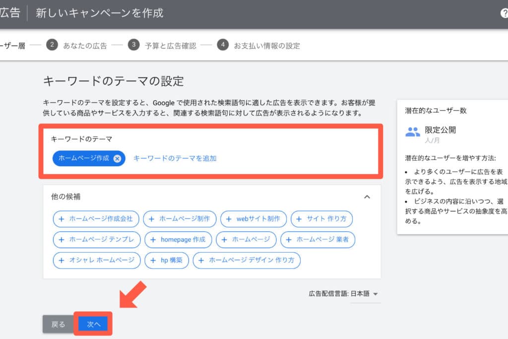 Google広告設定 キーワードのテーマの設定